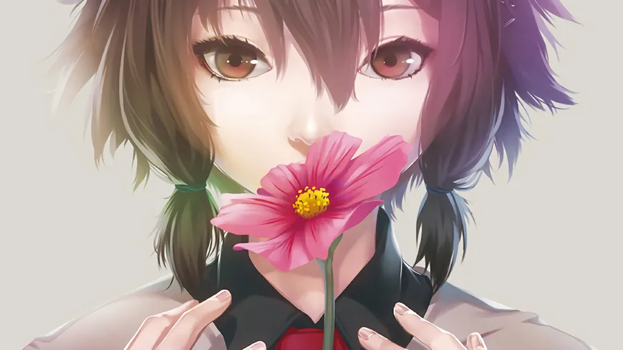 A Blissful Moment With A Flower In An Anime World. Wallpaper -