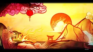 A Beautiful Representation Of Japanese Artwork In Okami Hd Wallpaper -