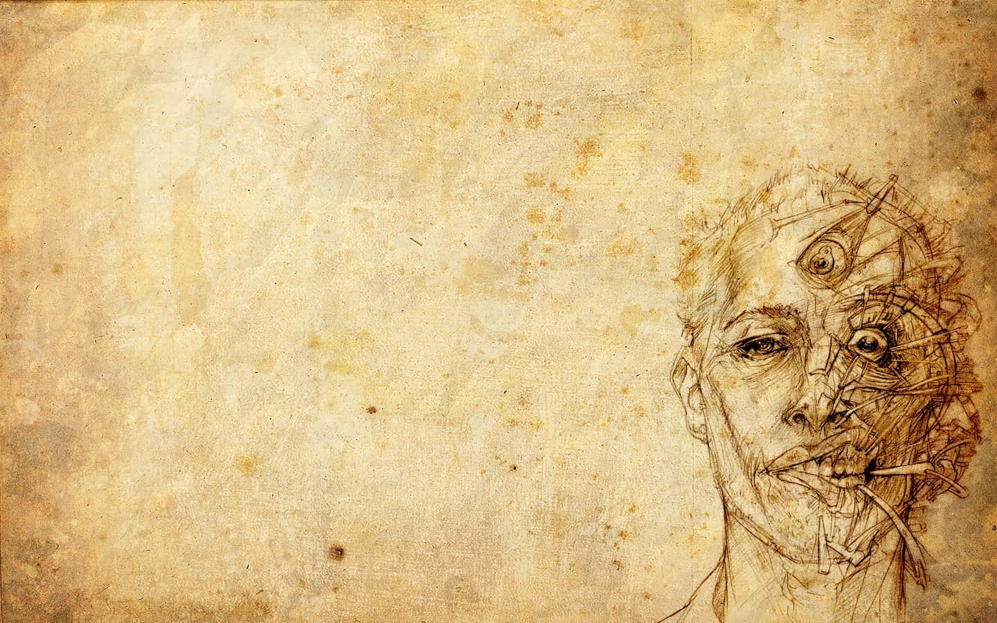 A Painting Of A Man With A Bright Light In His Head Wallpaper -