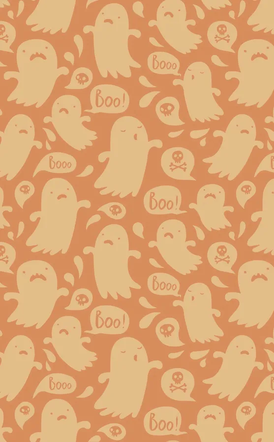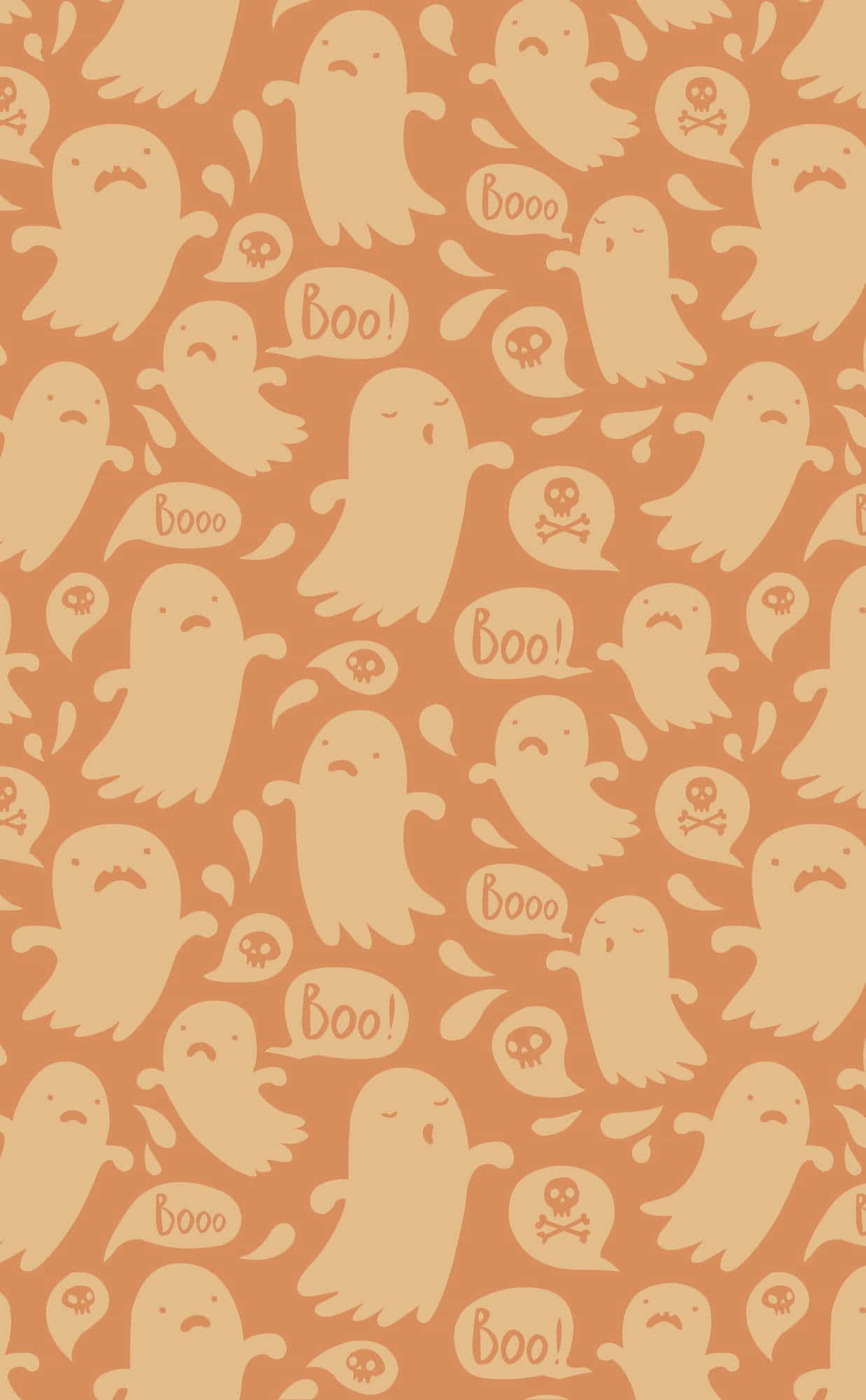 Orange Halloween Cute White Ghosts Wallpaper -