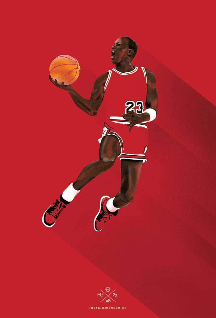A Basketball Player Is Jumping In Space With A Ball Wallpaper -