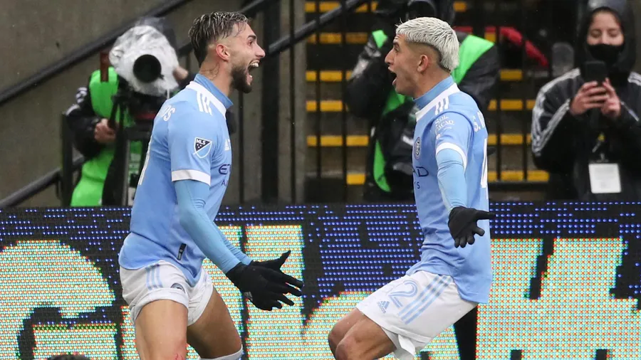 Valentin Castellanos Celebrating With Teammates New York City Fc -