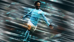 Victorious Manchester City Celebrates With Trophy Wallpaper