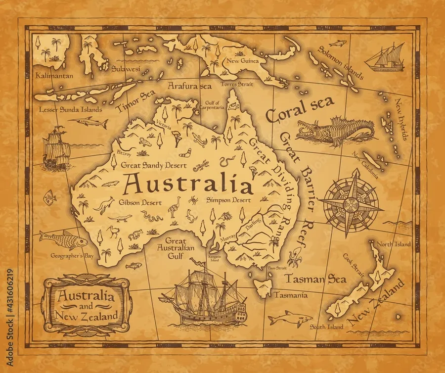 Vintage Australia Map Artistic Representation -