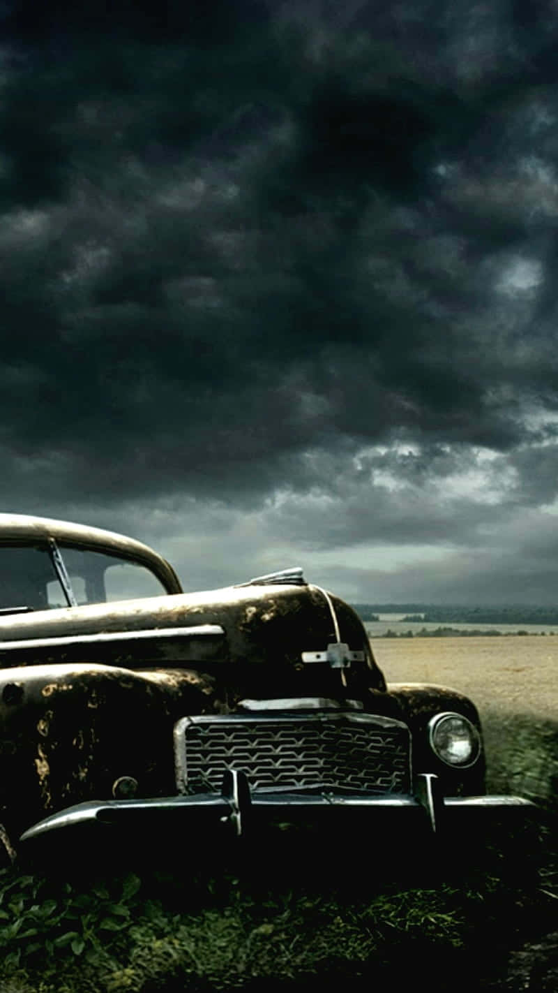 Vintage Car With Dark Sky Iphone Wallpaper