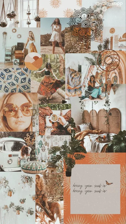 Vintage Collage Aesthetic Light Peach Color Wallpaper -