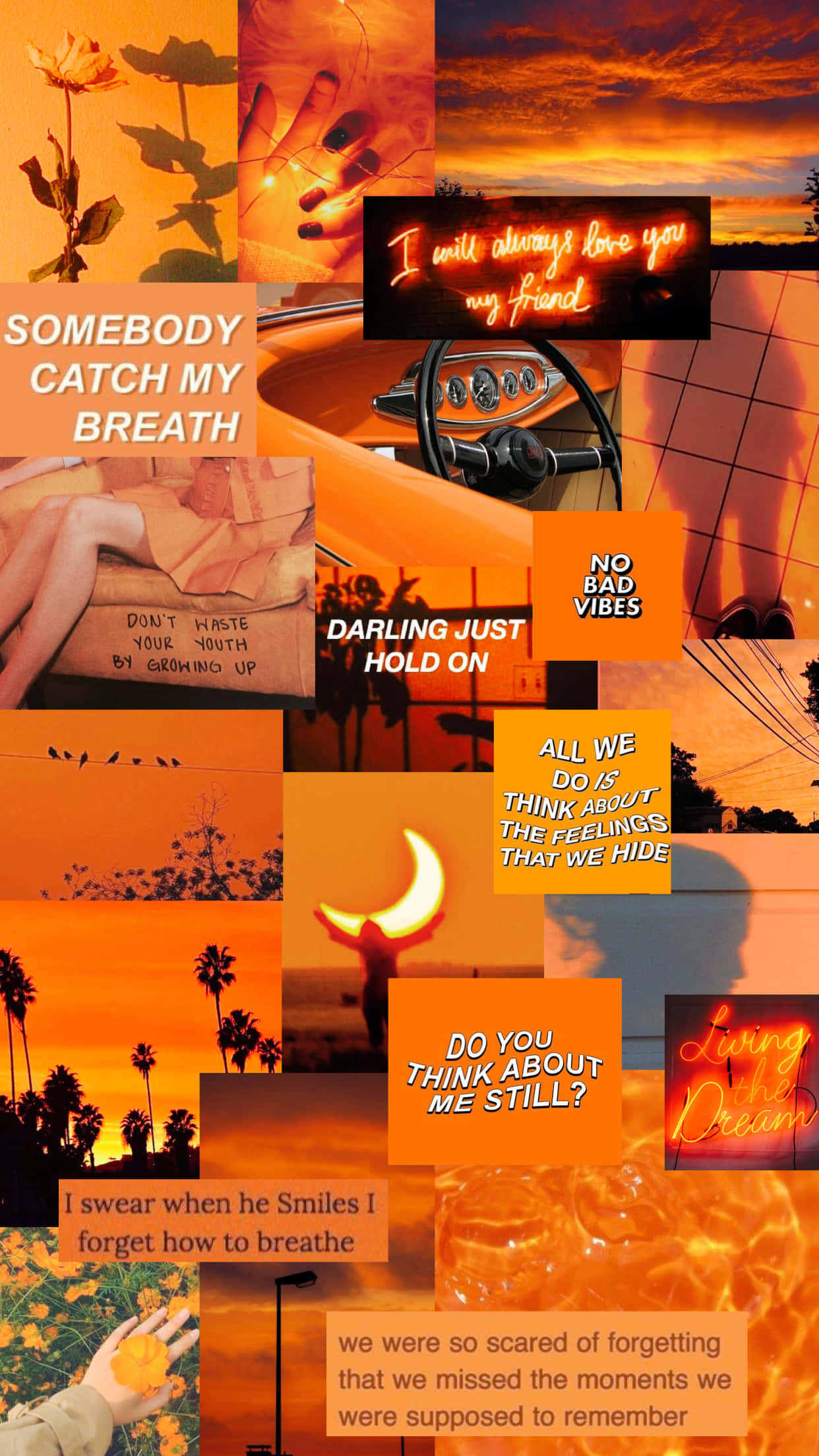 Vibrant Orange Aesthetic Collage Wallpaper -