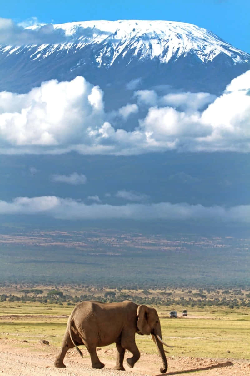 Stunning Portrait Of Mount Kilimanjaro With An Elephant Wallpaper -