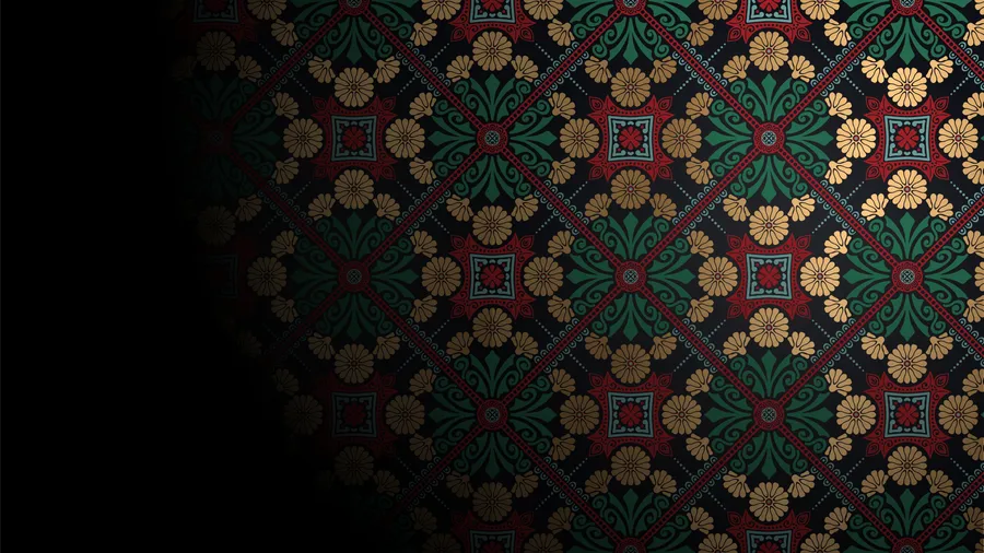 Wallpaper With A Black Background And Red And Green Designs Wallpaper