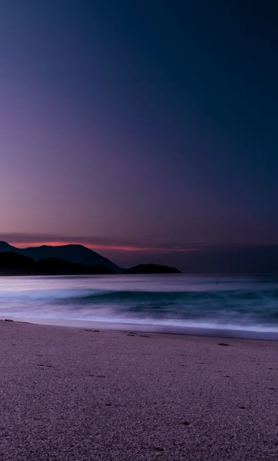 Waves On The Shore On Blue And Purple Sunset Wallpaper -