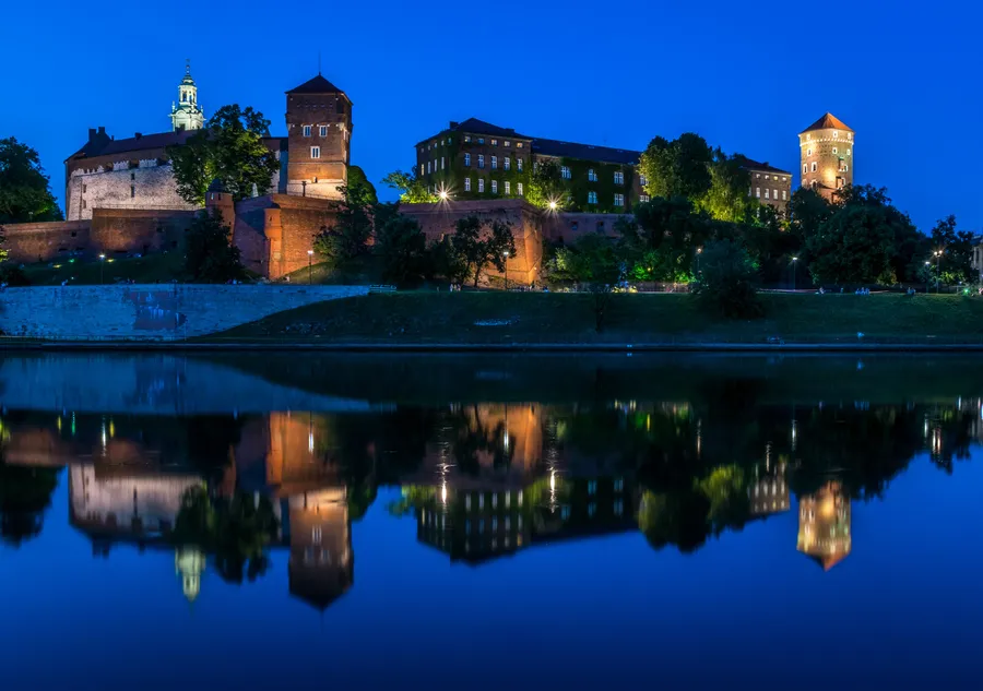 Wawel Castle Night Illuminated Water Reflection Wallpaper -