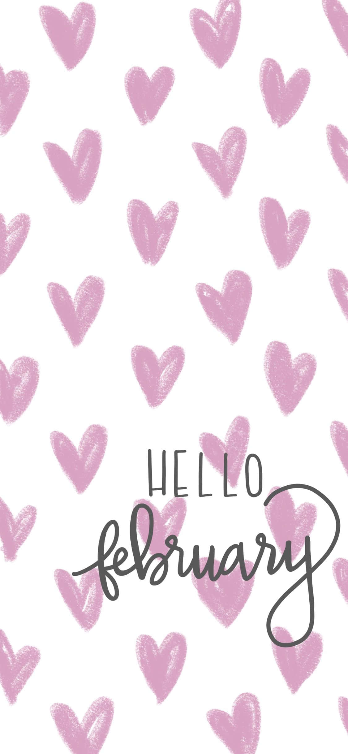 Hello February Wallpaper With Hearts And A Pink Background Wallpaper -