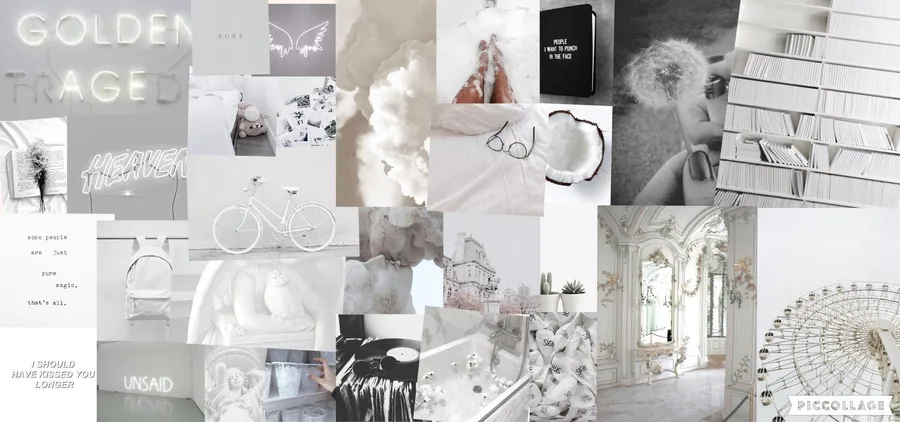White Aesthetic Laptop Photo Tiles Wallpaper -