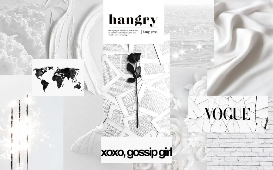 White Aesthetic Laptop Photo Tiles Wallpaper -