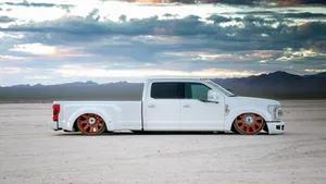 "side Shot Of Classy White Dropped Truck" Wallpaper -