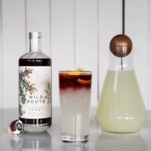 Wild Roots' Huckleberry-infused Vodka Bottle Showcasing Natural Ingredients Wallpaper -