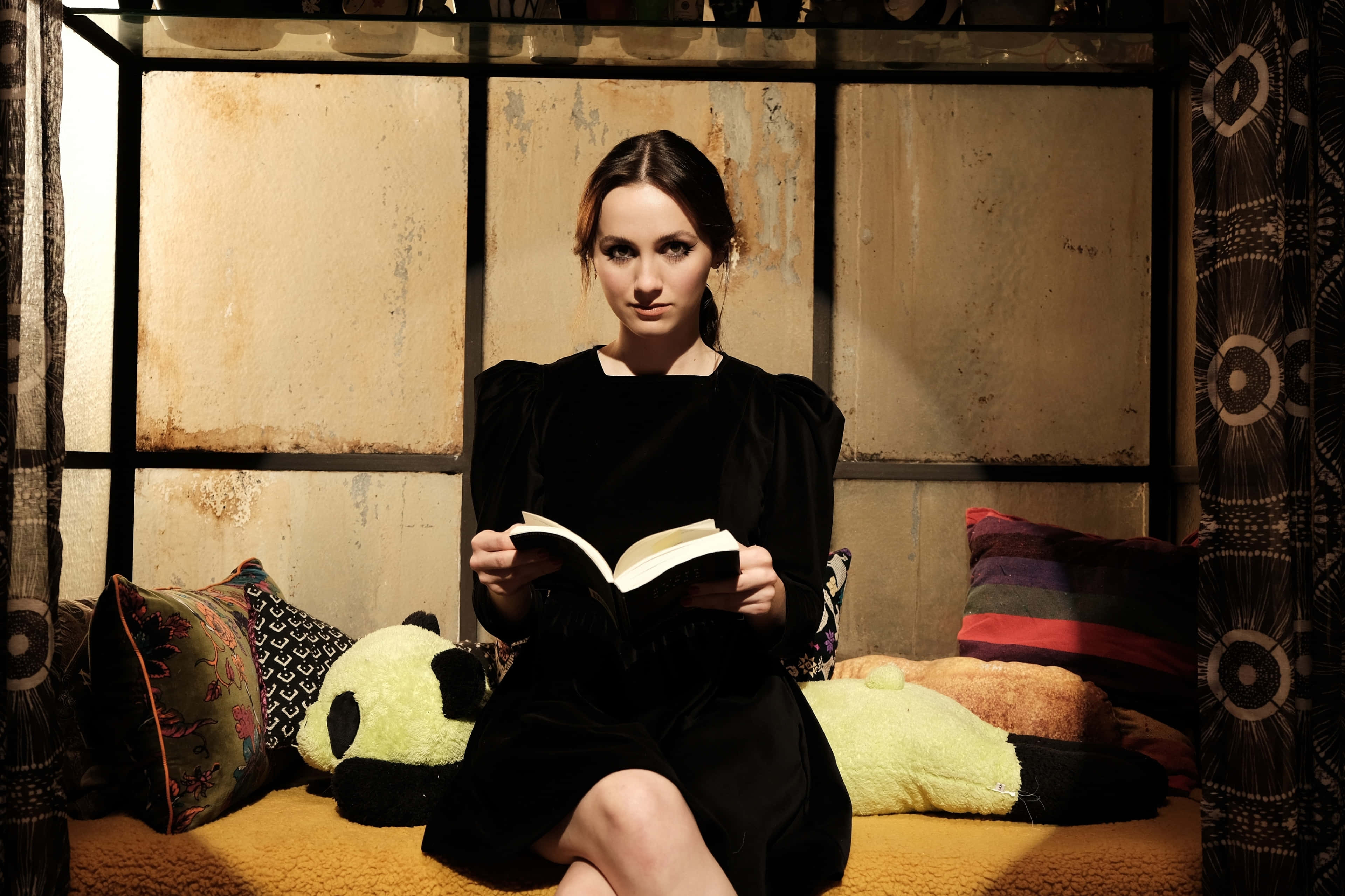 A Woman With Curly Hair In A Dark Room Wallpaper -