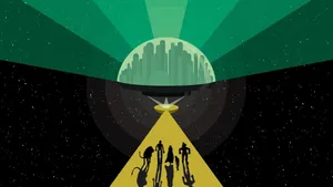 A Group Of Characters Standing On The Beach Wallpaper -