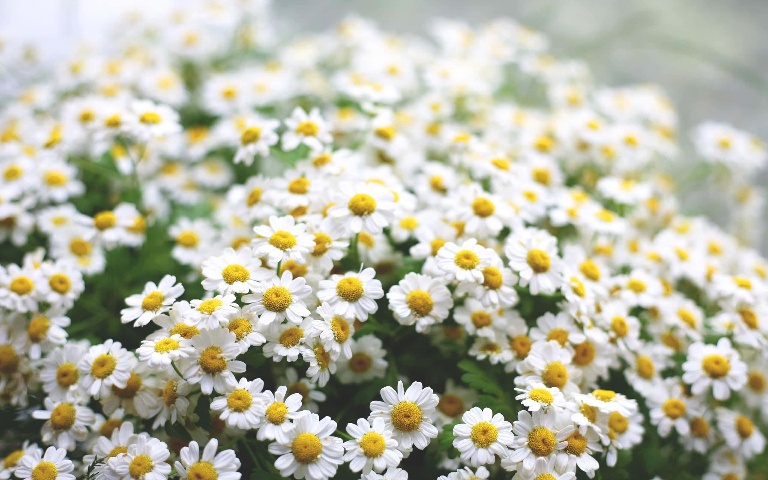A Bunch Of White Daisies On A Green Background Wallpaper -