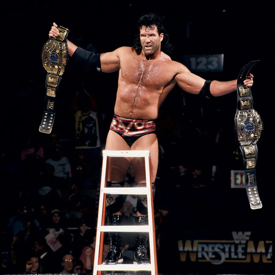 Wrestler Scott Hall With Championship Belts -