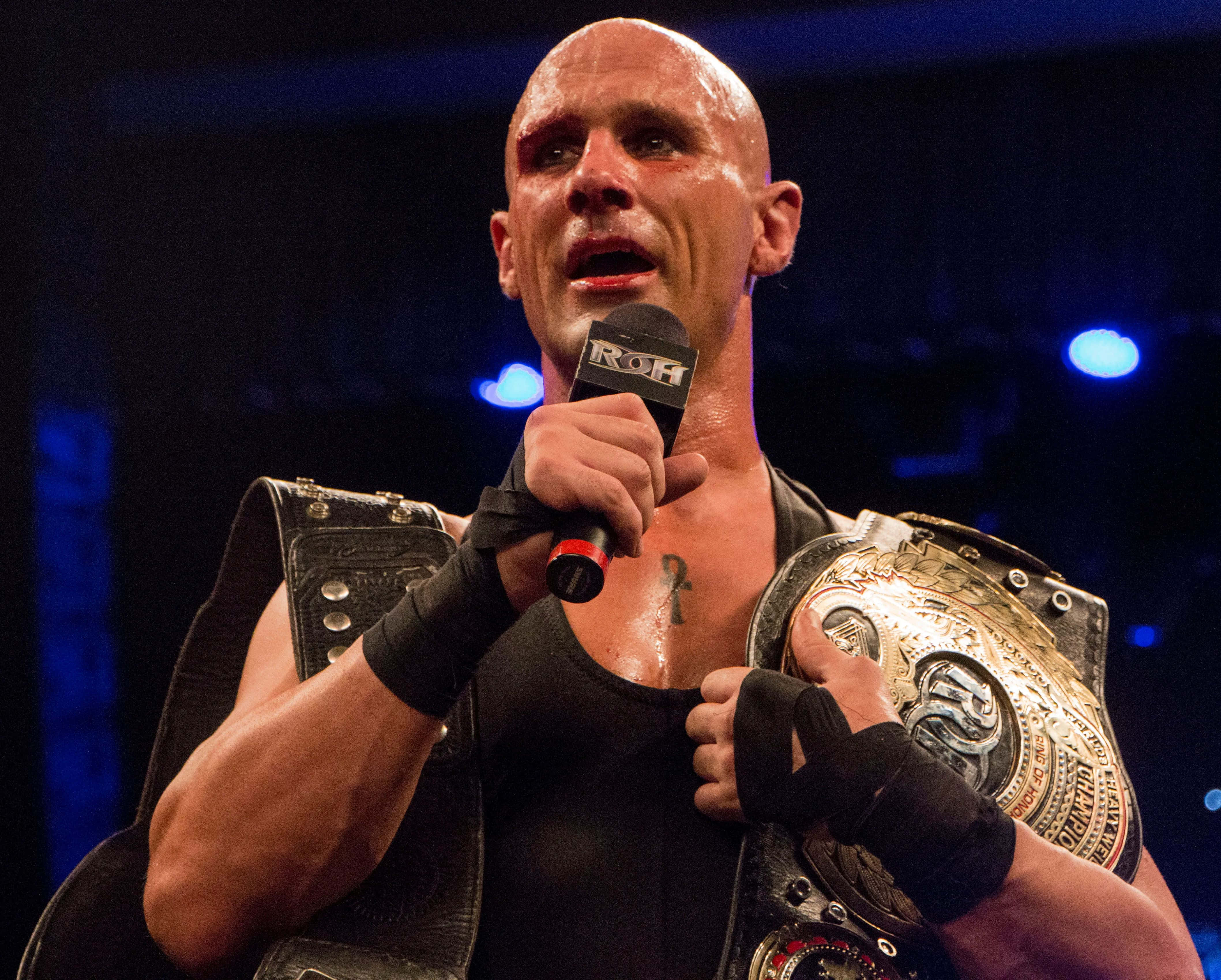 Christopher Daniels Triumphantly Holding The Roh Championship Belt Wallpaper -