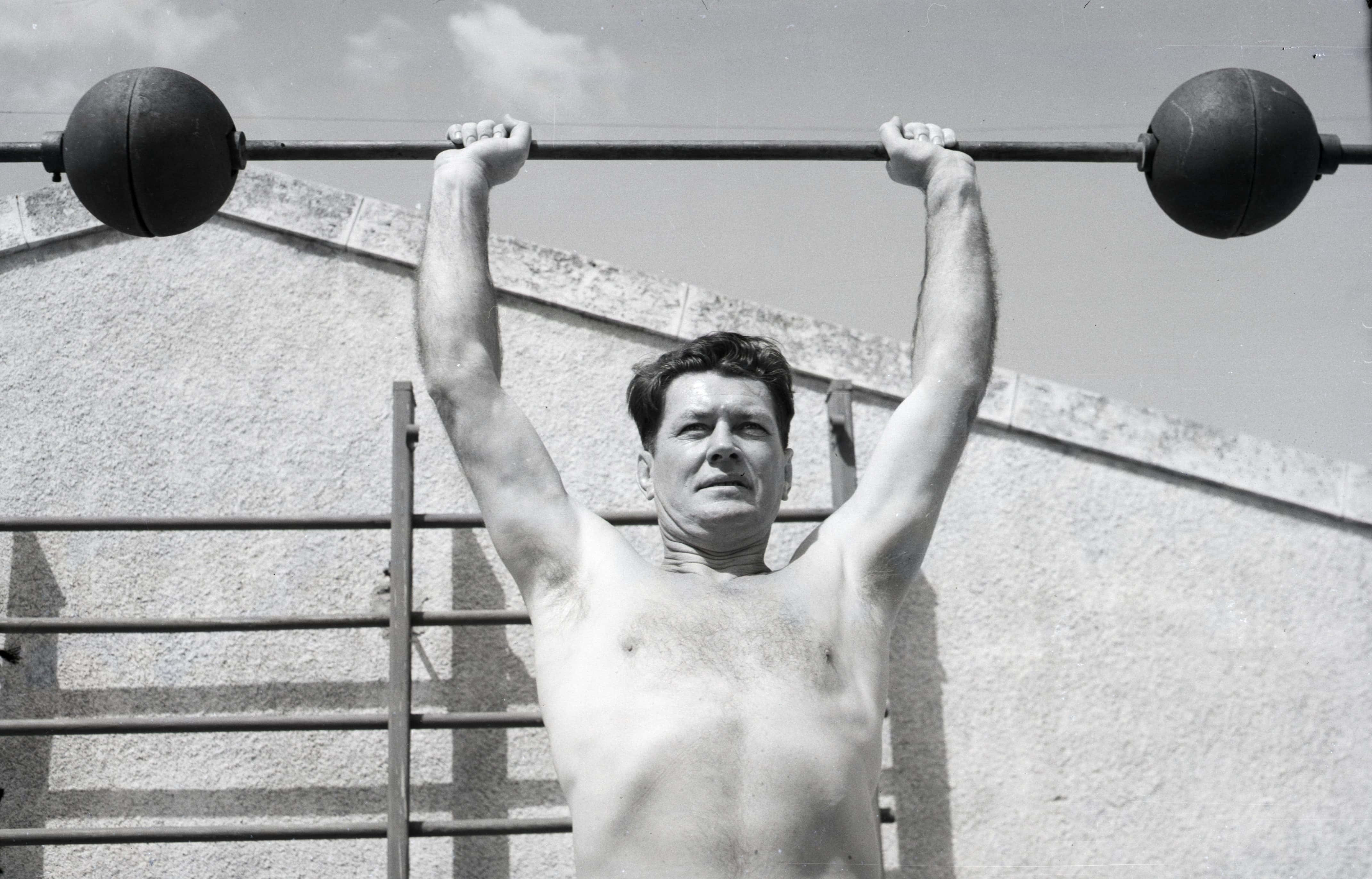 Young Gene Tunney Lifting Dumbbells Wallpaper