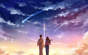 Gazing At The Falling Stars, With 'your Name' Written In Them. Wallpaper -