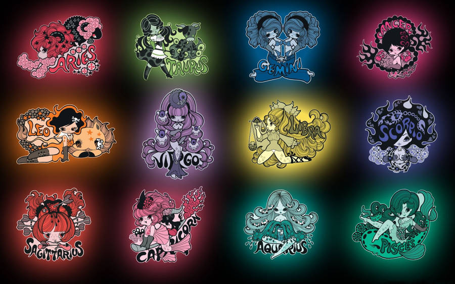 Zodiac Signs Chibi Neon Aesthetic Wallpaper